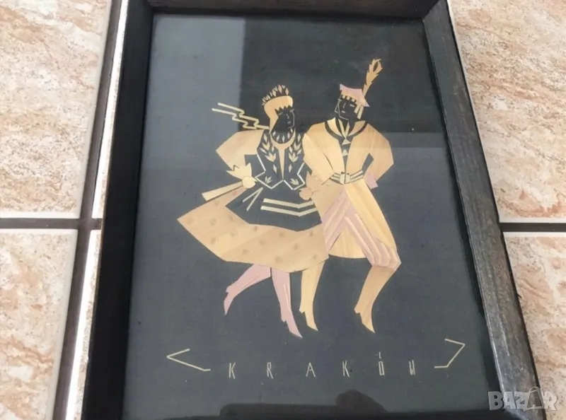 2. Картина “Краков”, танцьори. Правена е от опитен майстор, като всяка отделна част е изработвана и лепена собственоръчно. Размери: 18,5 / 24 см. Цена - 50 евро;