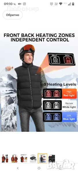 Отопляема жилетка с включена батерия 10000mAh 5V 2A, голям капацитет и дълъг живот на батерията от 8 часа, малкият размер е лесен за носене и по-удобен за преместване. USB отопляема жилетка може да зарежда смартфони и други мобилни устройства.