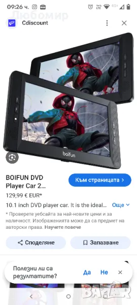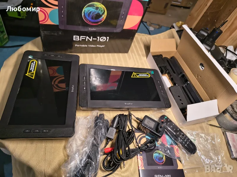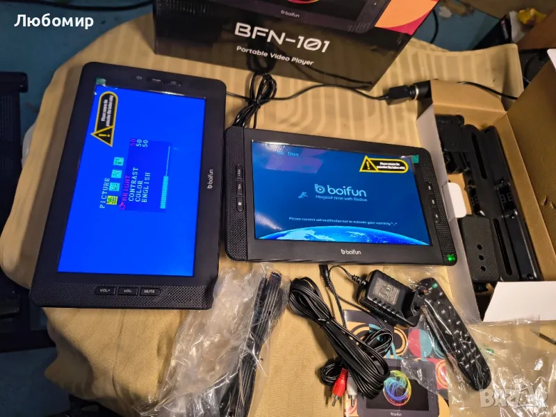 Налични два комплекта .BOIFUN DVD плейър за кола 2 екрана 10.5 инча със 7 часа батерия, преносим телевизор, облегалка за глава 2 монитора 1024 x 600 HD, стойка за облегалка за глава USB AV IN/Out FM.Перфектен размер: 10,1-инчов DVD плейър за кола. Идеалният размер е за облегалка за глава в кола. Можете също така да захранвате и свързвате монитора-плейър само с един AV/DC кабел, така че да можете да гледате един и същ филм и на двата плейъра едновременно.Подобрени материали: материалите на DVD плейъра за кола са преобразувани в PC/ABS C2950. Устойчивостта на огън и удароустойчивостта са значително подобрени. Клиентите вече не е нужно да се притесняват от високи температури или случайни падания.Надежден живот на батерията: акумулаторната батерия с капацитет 5000 mAh осигурява до 7 часа време за възпроизвеждане за основния играч и 5 часа за двамата играчи. В допълнение, зарядното за кола и захранващият адаптер са най-добрата защита за всяка по-дълга почивка и ви осигуряват пълна безопасност по време на шофиране.Стерео високоговорител и FM изход: подобреният високоговорител ви осигурява ясен и висок глас по време на възпроизвеждане. Освен това, BOIFUN има вграден FM предавател. Свързването на DVD плейъра към автомобилната аудио система чрез FM може да ви осигури естествено звучащо аудио изживяване.Съвместимост: DVD плейърът поддържа възпроизвеждане без регионално ограничение и множество файлови формати: CD, DVD, VCD, DVD±R(RW), CD-R(RW), CVD, SVCD. (Blu-ray не се поддържа) Налични са също USB и SD карта (до 32G).