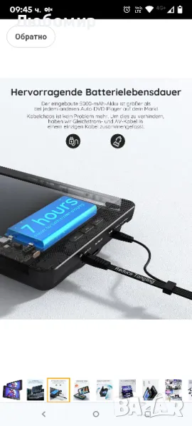 BOIFUN DVD плейър за кола 2 екрана 10.5 инча със 7 часа батерия, преносим телевизор, облегалка