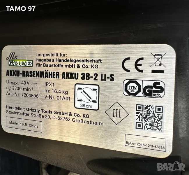 Марка и модел: Mr. Gardener Akku 38-2 Li-S