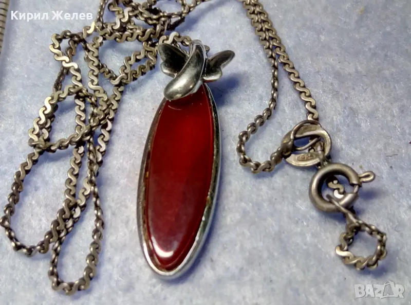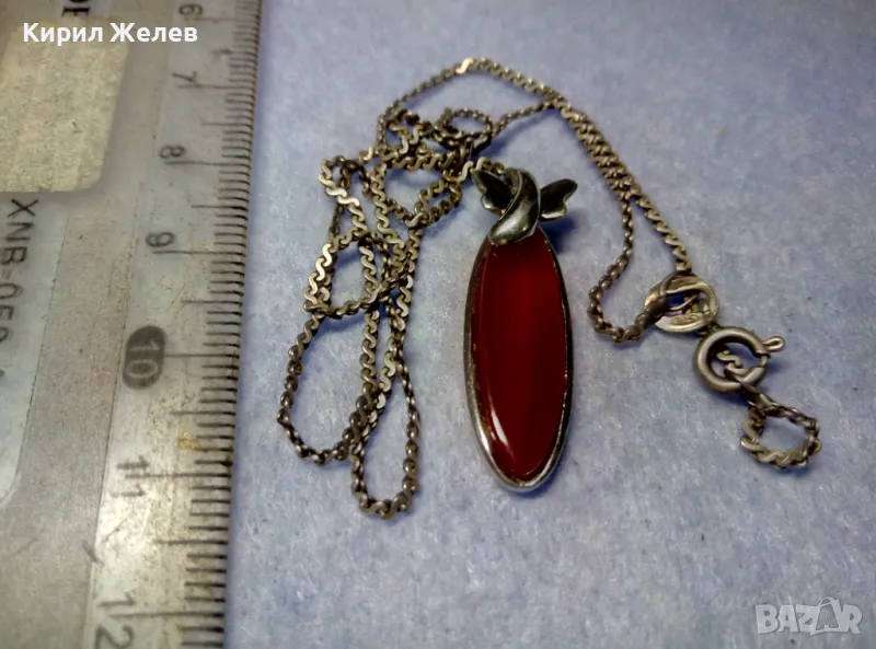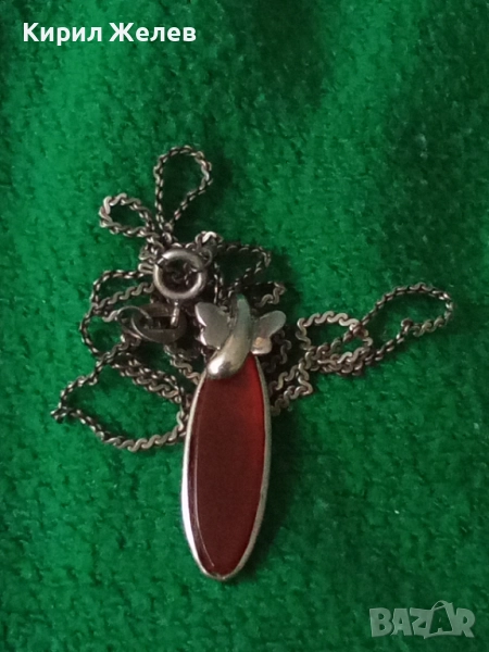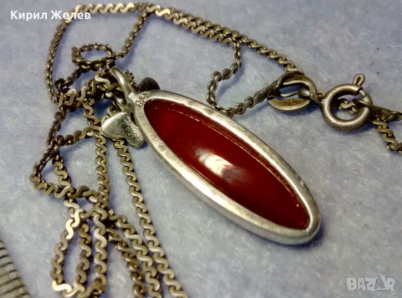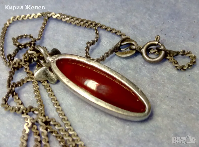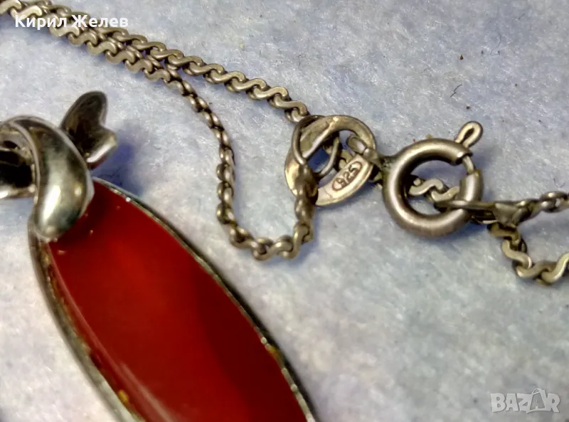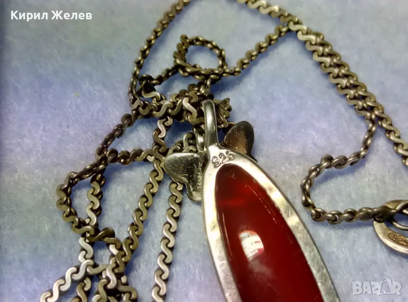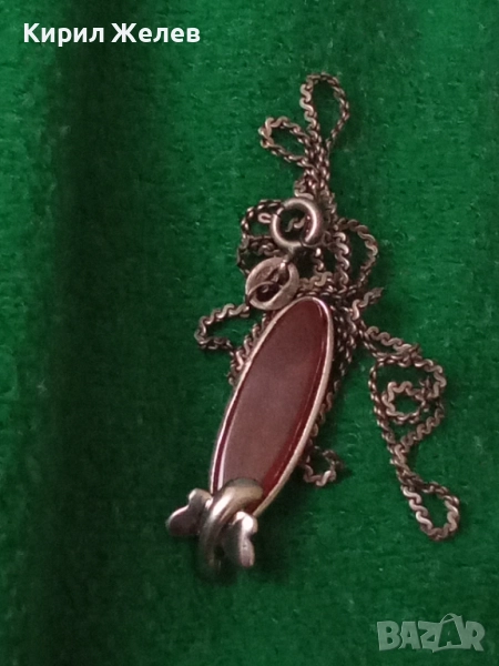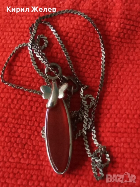 ПРЕЛЕСТНО СРЕБЪРНО КОЛИЕ ВЕРИЖКА със СКЪПОЦЕНЕН СРЕБЪРЕН ПЕНДАНТ СРЕБРО 925 с ШЛИФОВАН КАРНЕОЛ 40602