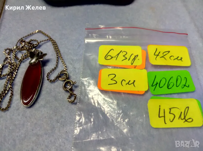 Пускам голяма СЕРИЯ от майсторска ръчна изработка старинни и нови СРЕБЪРНИ БИЖУТА - пръстени, обеци, медальони, гривни, ланци, колиета, брошки - някои са инкрустирани със скъпоценни или полускъпоценни камъни. Всичките са ТЕСТВАНИ ПРОФЕСИОНАЛНО върху лидийски камък с пробер - киселина за сребро, като особено по-старите, ръчно изработени и без маркировка които са, е заснето и резултата на камъка - яркочервеният цвят при натъркване и капване на киселината показва, че са от масивно СРЕБРО ВИСОКА ПРОБА. Има и накити от САЧАН /нископробна сребърна сплав, с която са работели старите майстори - куюмджии от периода на ВЪЗРАЖДАНЕТО и края на 19-ти век/, мед, бронз и благородна стомана с позлата или посребряване. Снимките ги ОНАГЛЕДЯВАТ! Имам НАД 27000 обяви в профила си - За ВСЕКИ по НЕЩО...! Изпращам по Еконт или Спиди с опция Преглед/Тест и отстъпка-транспорт.
