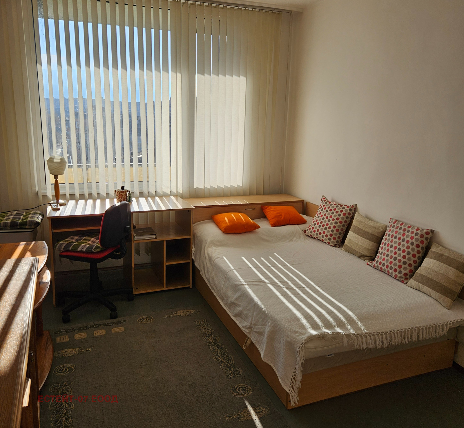 Оферта 123 . Предлагаме ви , отличен тристаен апартамент, разположен е на седми етаж от осеметажна , монолита сграда, находяща се на отлична локация, в непосредстена близост до детски градини, училища , търговски център и големи хранителни магазини. Апартамента е изключително топъл, светъл и функционален. Представлява голяма всекидневна с трапезария и кухненски бокс , с тераса, антре , санитарен възел, две спални , баня и голяма южна тераса, с много хубав изглед към планината.В апартамента има сменена дограма, подовете настилки са с естествен паркет и мазайка.В цената на имота е включени изба и таван. Сградата е с асансьор и има добри вариянти за паркиране.За повече информация и огледи:0898573681