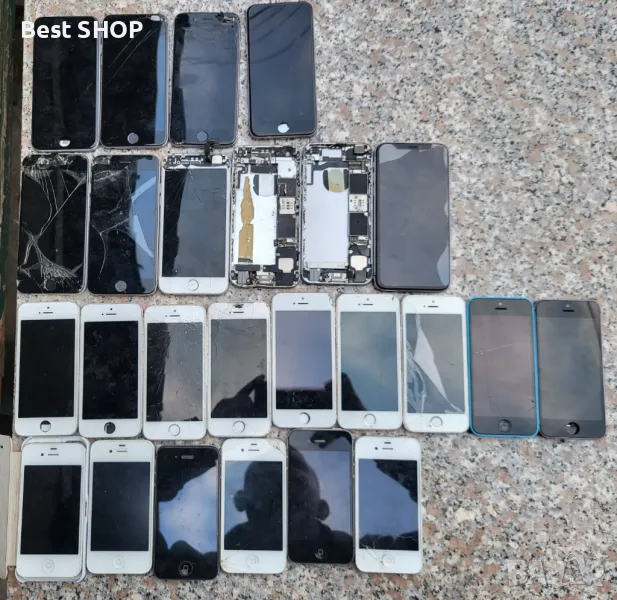 Почти всички телефони стартират и работят, повечето са заключени има и отключени платки без айклауд, някои за дисплей, продават се като за части обща цена!!!