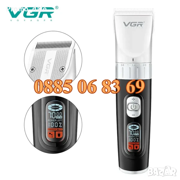 Maшинка за oформяне и подстригване VGR V-069. Изключително прецизна за професионално бръснене, подкъсяване и оформяне на косата, лицевото окосмяване и интимната зона и батерия с дълъг живот. Тримера има закалено острие, което гарантира дълъг живот със слабо захабяване.
