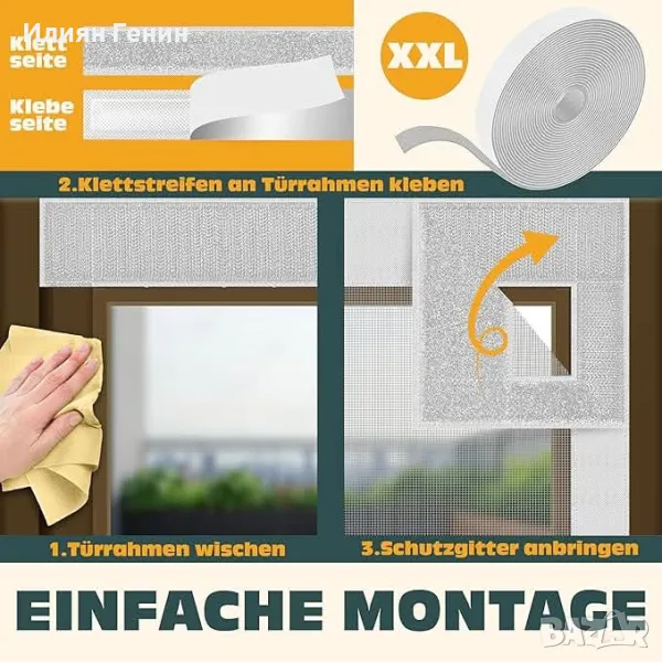 Инсталацията е лесна и може да се извърши само в няколко стъпки. Преди монтажа, избършете рамката на вратата, за да създадете гладка, чиста повърхност и да осигурите здраво захващане. Поставете велкро ленти върху всички велкро повърхности. След като мястото е сигурно, отстранете защитното фолио. Поставете решетката с лепящата повърхност върху рамката на вратата, отстранете защитното фолио и притиснете здраво решетката.