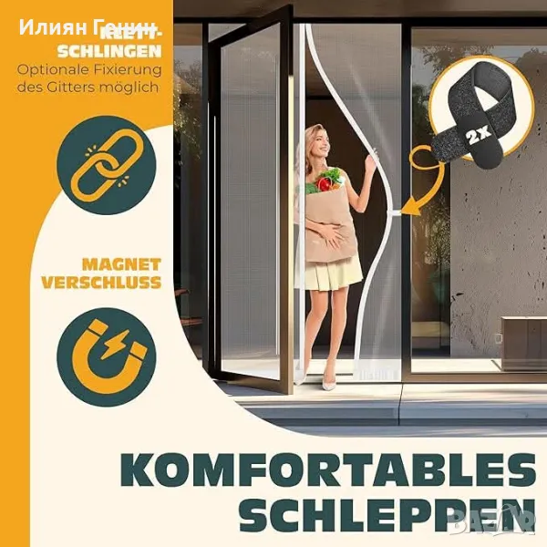 Нашата мрежа против комари е идеалното решение и ви гарантира по-добра вентилация и предотвратява навлизането на вредители, дори когато вратата е отворена. Благодарение на магнитните закопчалки, устройството за мрежа против комари е проектирано така, че вашите деца и домашни любимци да могат лесно да преминават през нея. След преминаване през защитната решетка, магнитите се захващат здраво и самостоятелно, осигурявайки максимална защита.