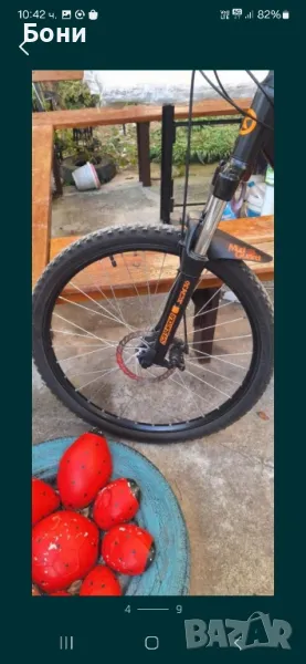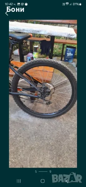 Велосипеда е със съвсем леки козметични забележки по кормилото и долната част на рамката. Гумите са на половин година. Окачването е опционално поръчано с въздух. То е много добро като има възможност за регулаж на амортисьора да се заключва и да не потъва, както и да се регулира степента му на потъване(меко или твърдо). Велосипеда е 8х3 скорости със дискови спирачки.