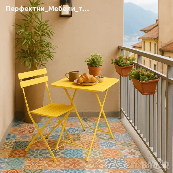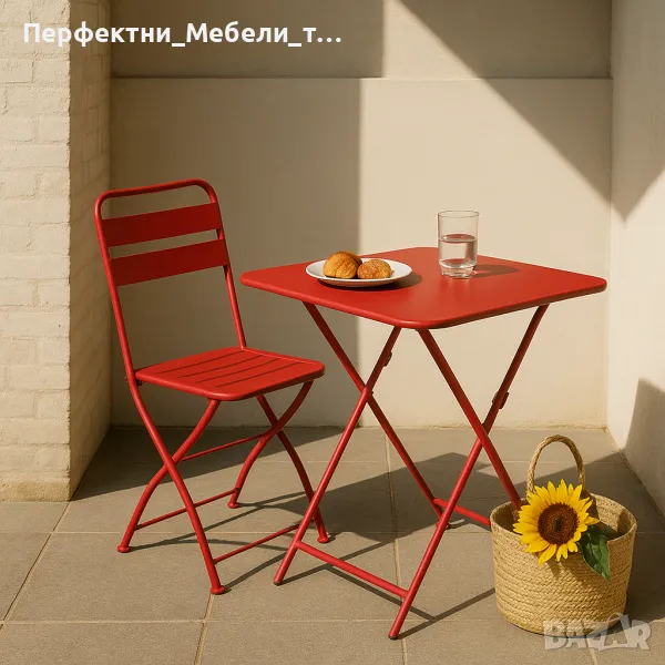 Цветен сгъваем комплект-маса със столове- за тераса син,жълт,червен цвят-маса с 2 стола