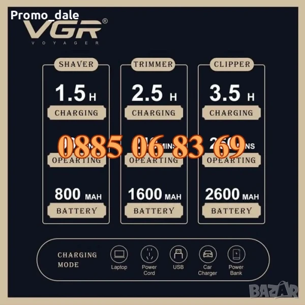 - Метален корпус: Изцяло метален корпус, машинката за подстригване/тример/самобръсначка VGR е готова за всяко предизвикателство, а елегантният дизайн, съчетан с ергономичната конструкция, прави този комплект от най-високо ниво както по отношение на издръжливост, така и на комфорт.