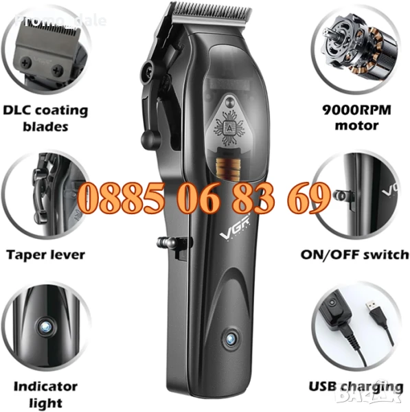 Мaшинка за oформяне и подстригване VGR V-653. Изключително прецизна за професионално бръснене, подкъсяване и оформяне на косата, лицевото окосмяване и интимната зонаи батерия с дълъг живот. Тримера има закалено острие, което гарантира дълъг живот със слабо захабяване.