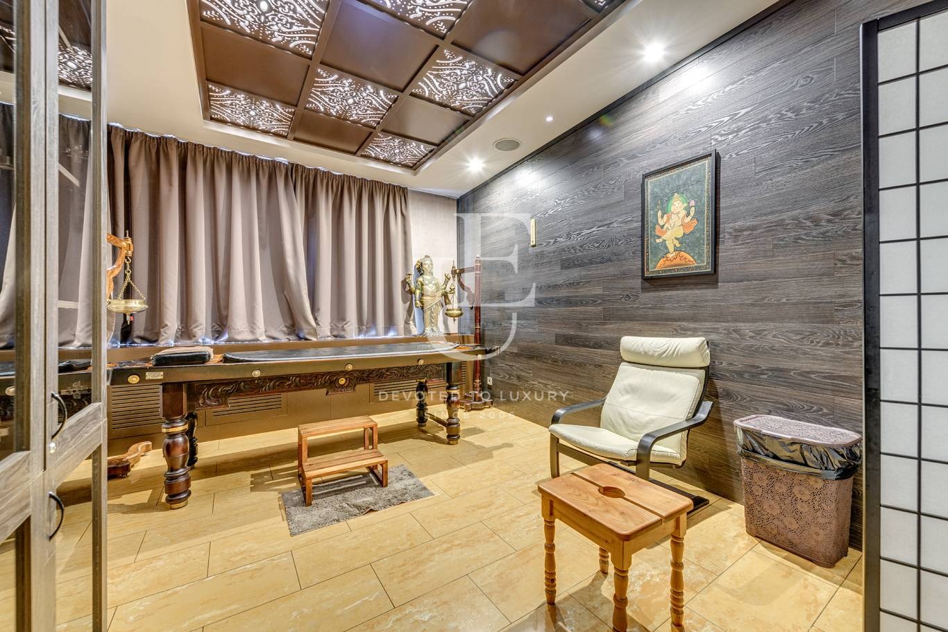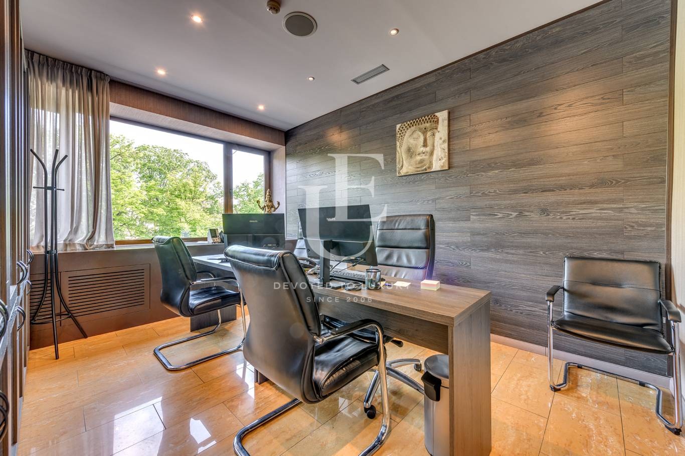 четири големи стаи, три от които със собствени бани и тоалетни, голям коридор с рецепция, луксозен кабинет, кухня, санитарно помещение и мазе Цената е без включен ДДС. Ref. ID:26128