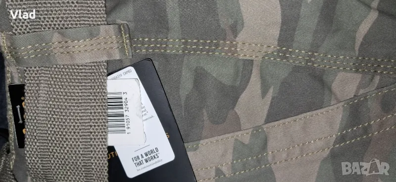 Изработени от издръжлив дишащ кепърен памук (twill cotton) за дълготраен комфорт и многократно носене. Цвят приглушен камуфлаж. Материал 100% памук с 9 джоба, вкл. дълбок страничен джоб за смартфон. Обиколката на талията е 99см, ханш 112см. Дължината на вътрешен шев 28см. Средна височина на талията. Катарамата на колана е с D пръстени. Страничните джобове се закопчават с копчета и велкро.