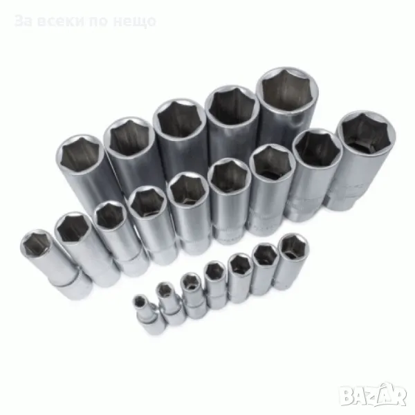 17 броя вложки 1/2’’ 6 – стенни 10, 11, 12, 13, 14, 15, 16, 17, 18, 19, 20, 21, 22, 24, 27, 30, 32 мм