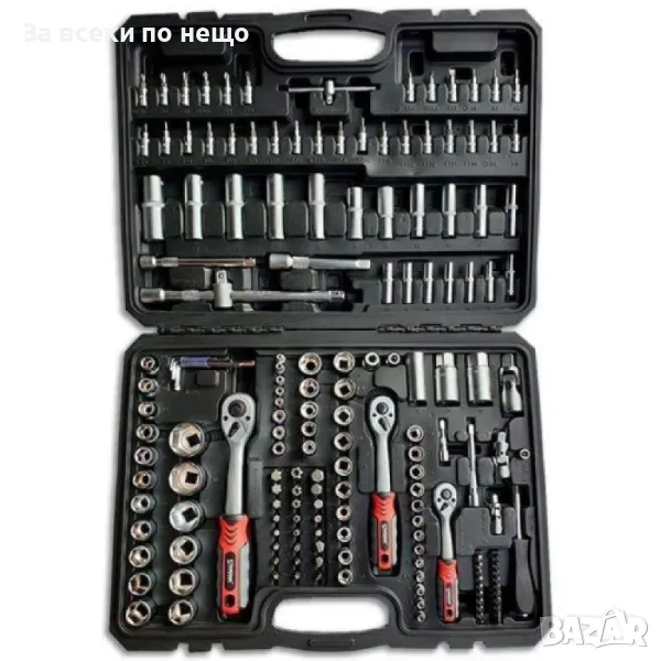 Качествен немски комплект от инструменти включващ всичко необходимо. Изработени от качествена хром-ванадиева стомана. Удобен за съхранение куфар, в който всичко ще седи на мястото си.