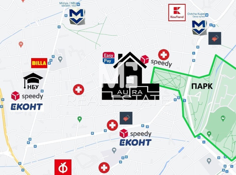 На пешеходно разстояние са хипермаркети 'Кауфланд', 'Била' и 'Фантастико', четири аптеки, 'НБУ' (Нов български универститет), офиси на 'Еконт' и 'Спиди', офис на 'EasyPay', банкови офиси, магазини и ресторанти, парк 'Овча Купел' и парк 'Славия', болница, медицински център, детски градини, училища, фризьорски салони, студиа за красота и др.