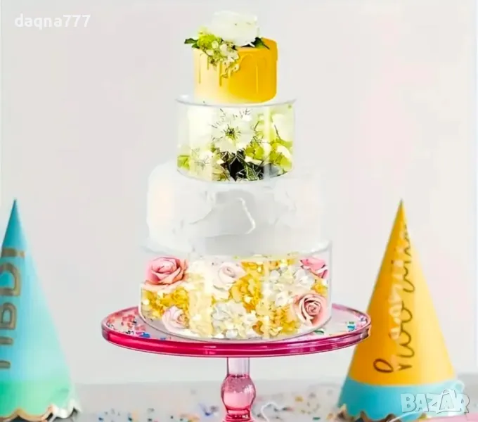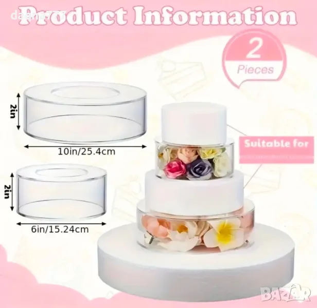 Комплект от 2 нови, прозрачни акрилни поставки за торта, които могат да бъдат запълнени с вашето въображение, кръгли цилиндрични тръби за торта, подходящи за центрове на сватбени и рожденнни партита, изработени от пластмаса, не се изисква електричество, комплект за многофункционални подставки за торта.