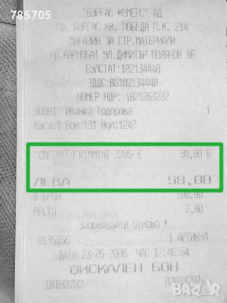 По касова бележка 98 лева.