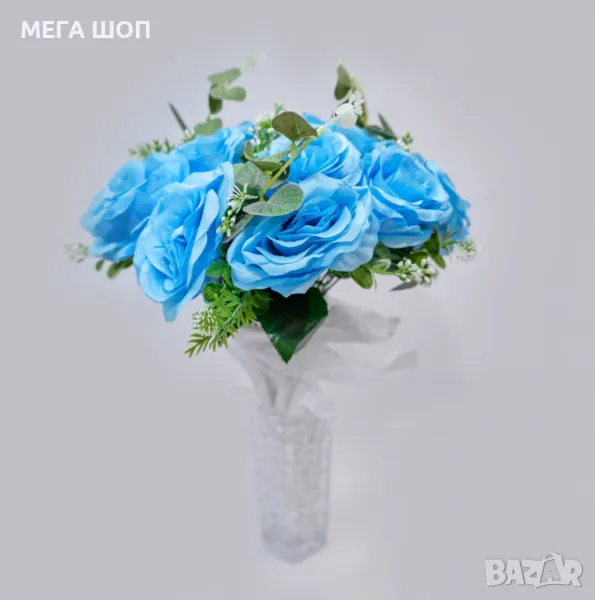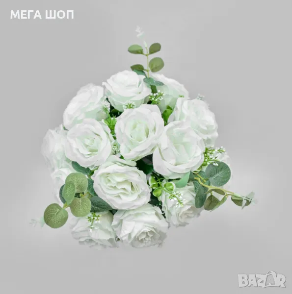 Изкуствени букети с рози и евкалиптови листа – Елегантна украса с дълготраен ефект → Обява 50346299