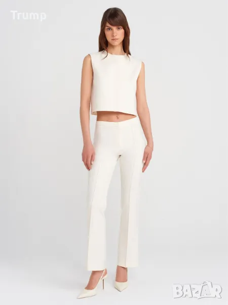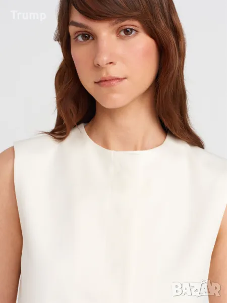 Елегантен Къс топ,потник със скрита копче - екрю → Обява 50346346