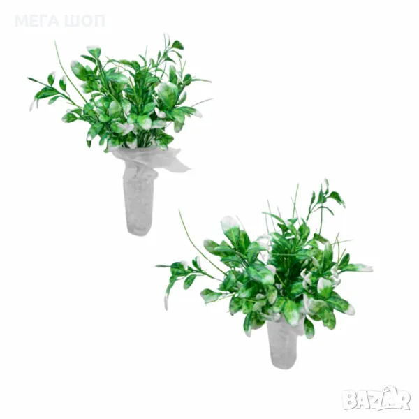 Изкуствена аранжировка от зелени клонки с бели акценти – Стилна нотка свежест за интериора → Обява 50346433
