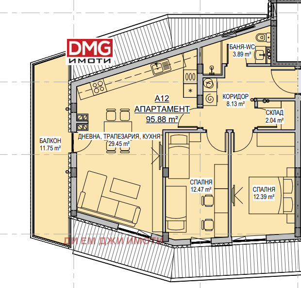 DMG ИМОТИ ИНВЕСТ - Ексклузивен партньор в продажбите, предлага 3-стаен апартамент А12 в новострояща се сграда в кв. Левски-В.