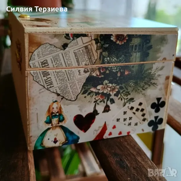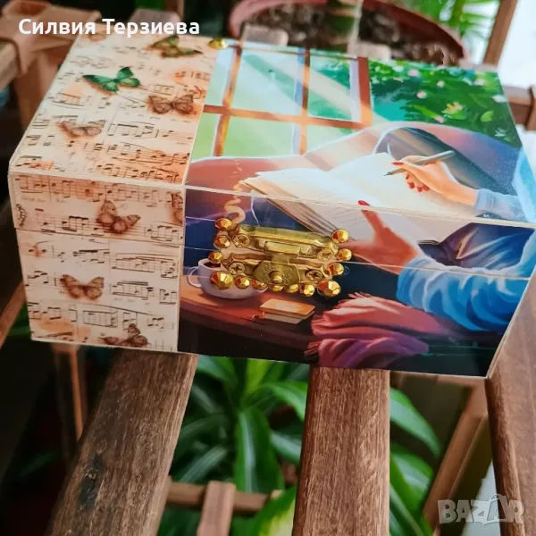 Ръчно изработена дървена кутия с вътрешна декорация → Обява 50347165