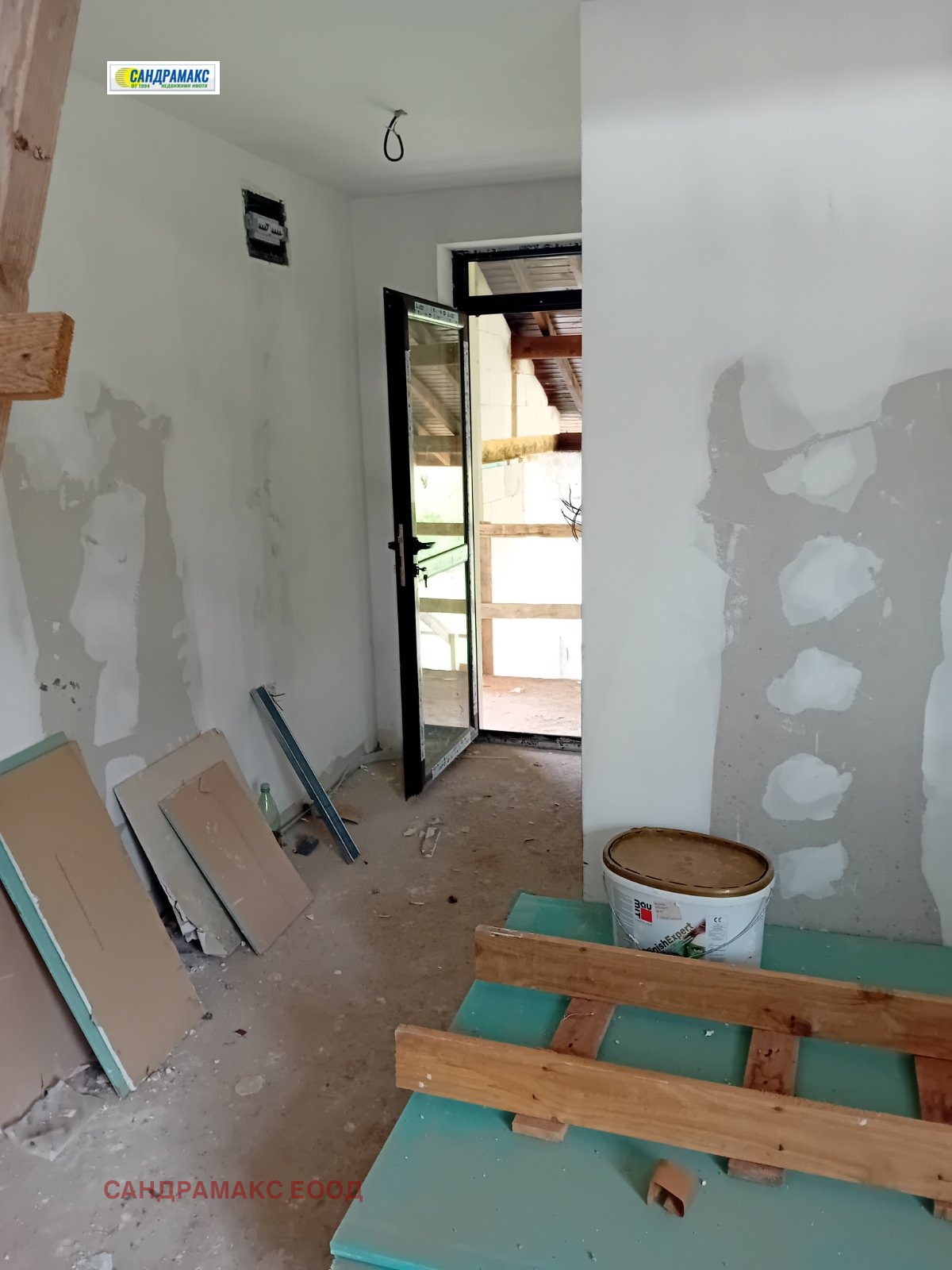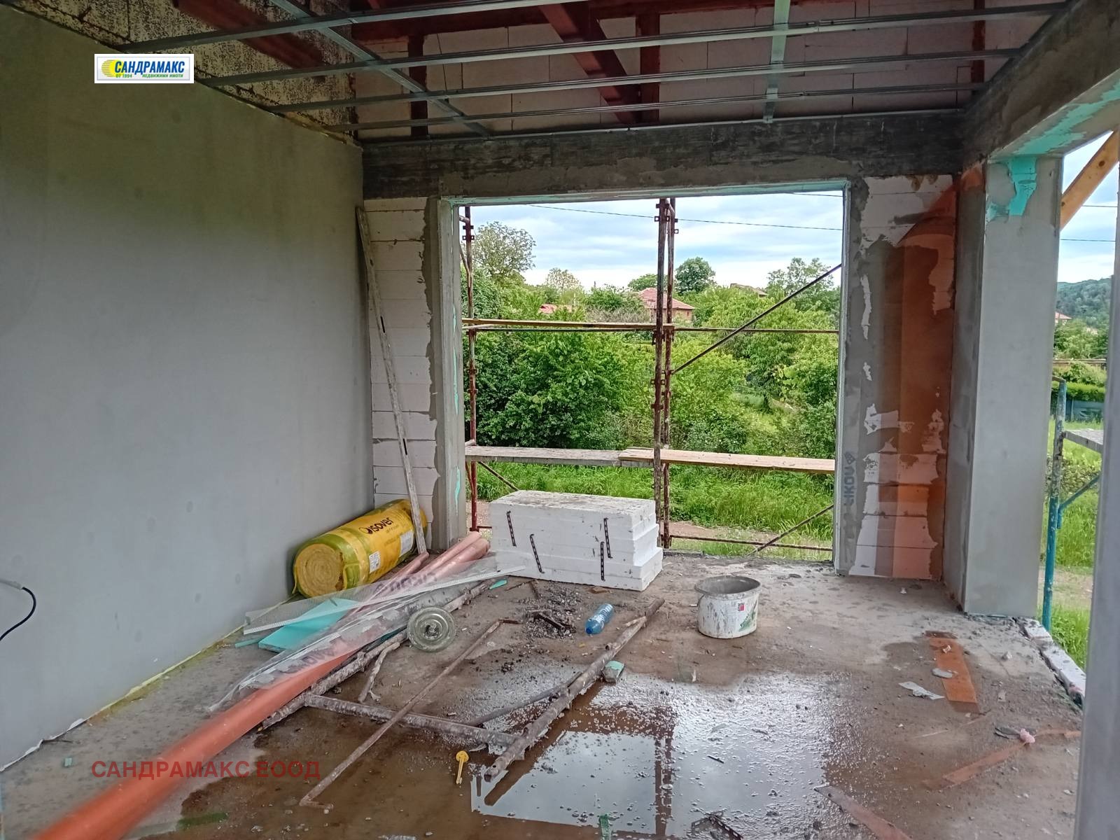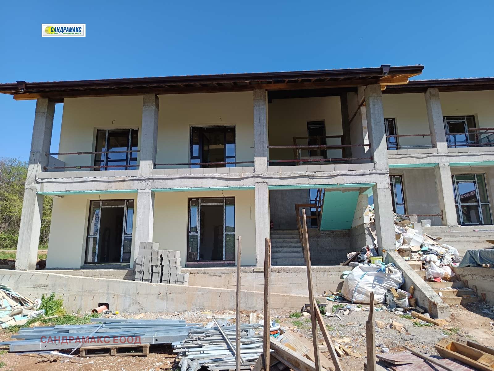 Етап на завършеност: Сградата е изградена напълно на груб строеж с оставащ кофраж от EPS с допълнителна изолация 10 см - графит. Монтирана е алуминиева дограма с термомост. Изградени са трасетата за ЕЛ и ВИК.Изолацията с мазилката са частично довършени.