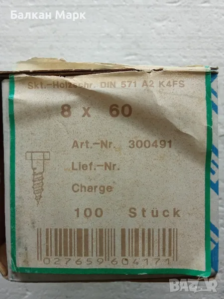 🔩 Патентен винт,ВИНТОВЕ ЗА ДЪРВО С ШЕСТОГРАМНА ГЛАВА 8x60 мм , DIN 571,А2 неръждаема стомана | ВНОС ОТ ГЕРМАНИЯ