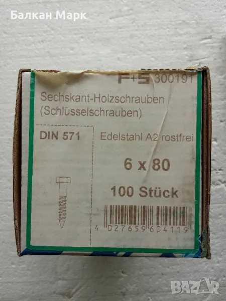 🔩 Патентен винт,ВИНТОВЕ ЗА ДЪРВО С ШЕСТОГРАМНА ГЛАВА 6x80 мм , DIN 571,А2 неръждаема стомана | ВНОС ОТ ГЕРМАНИЯ