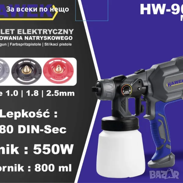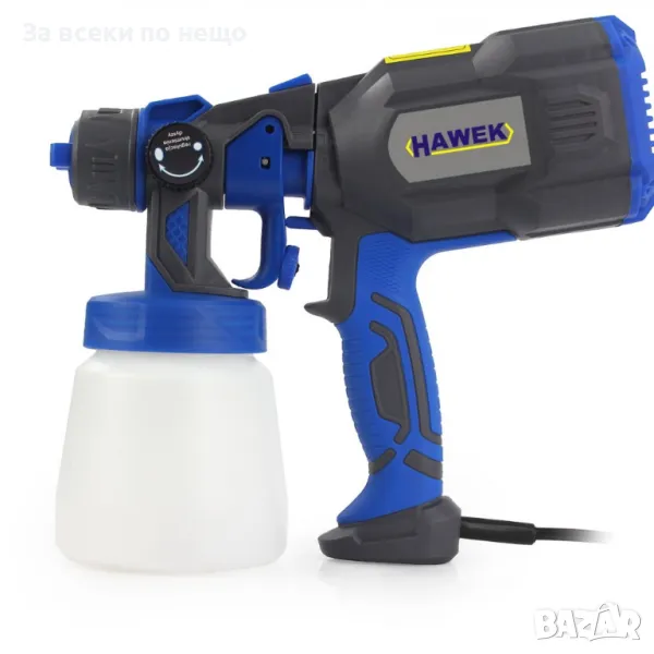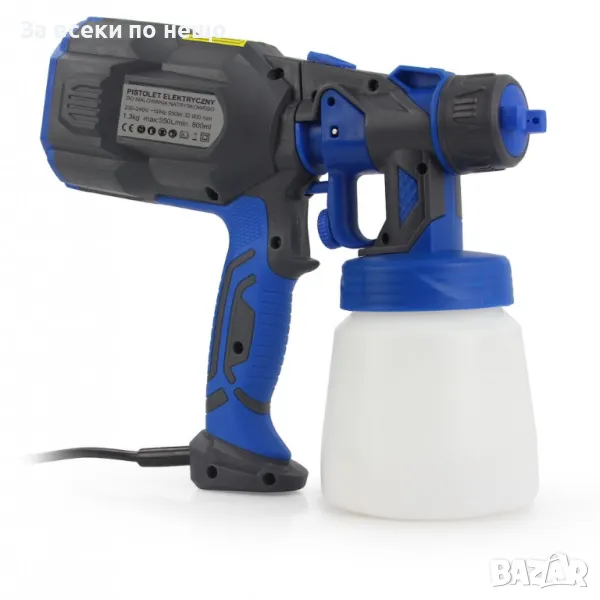 Електрически пистолет с висок дебит и ефективност, предназначен за боядисване с бои и лакове. Благодарение на вградения компресор, той не изисква външно подаване на сгъстен въздух. Професионалният пистолет за боядисване може да се използва при боядисване на повърхности с лакове на водна основа, грунд, акрил, шпакловки, метализирани и перлени лакове. С пистолетът можете лесно да достигнете до труднодостъпни места. Той ви позволява да покривате неправилни, ажурни и кръгли повърхности.