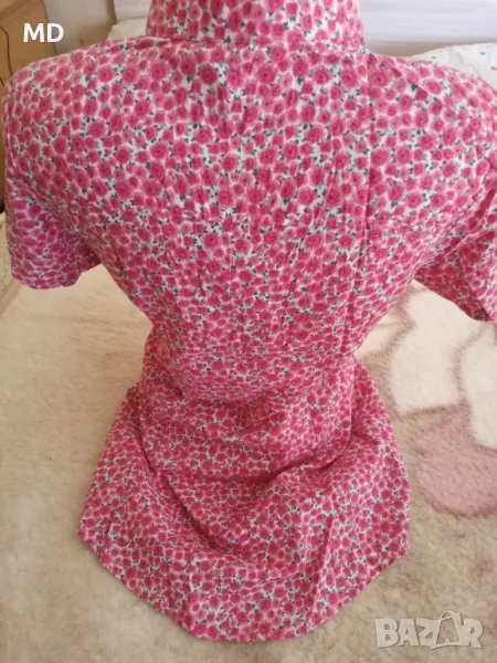 Дамска памучна туника на розови цветчета . На ръкава има копче да се навие и встрани на самата туника при желание.