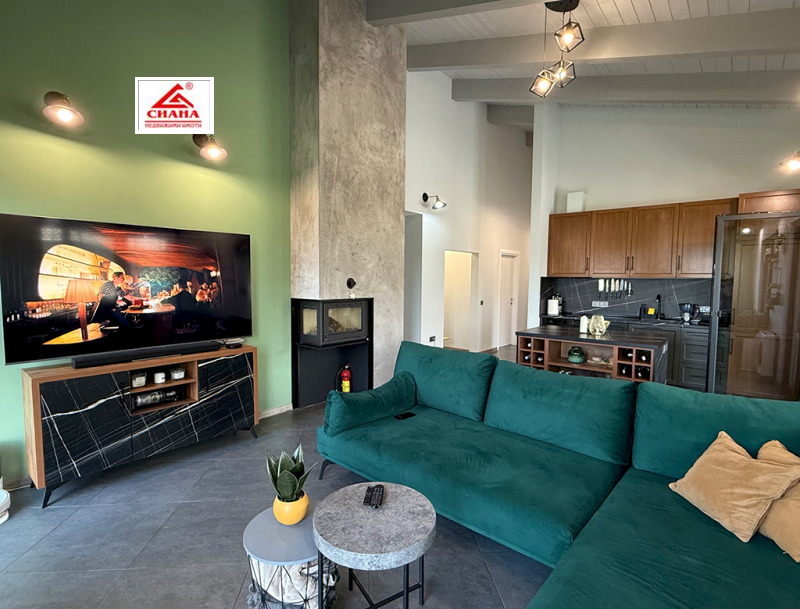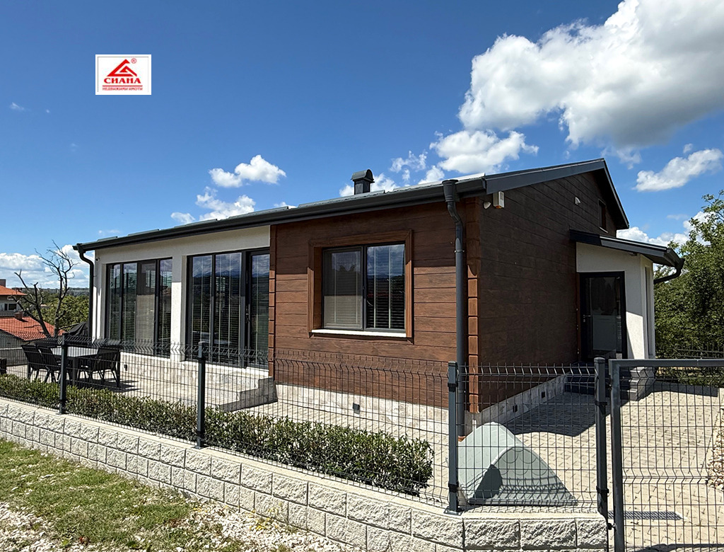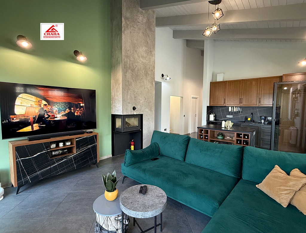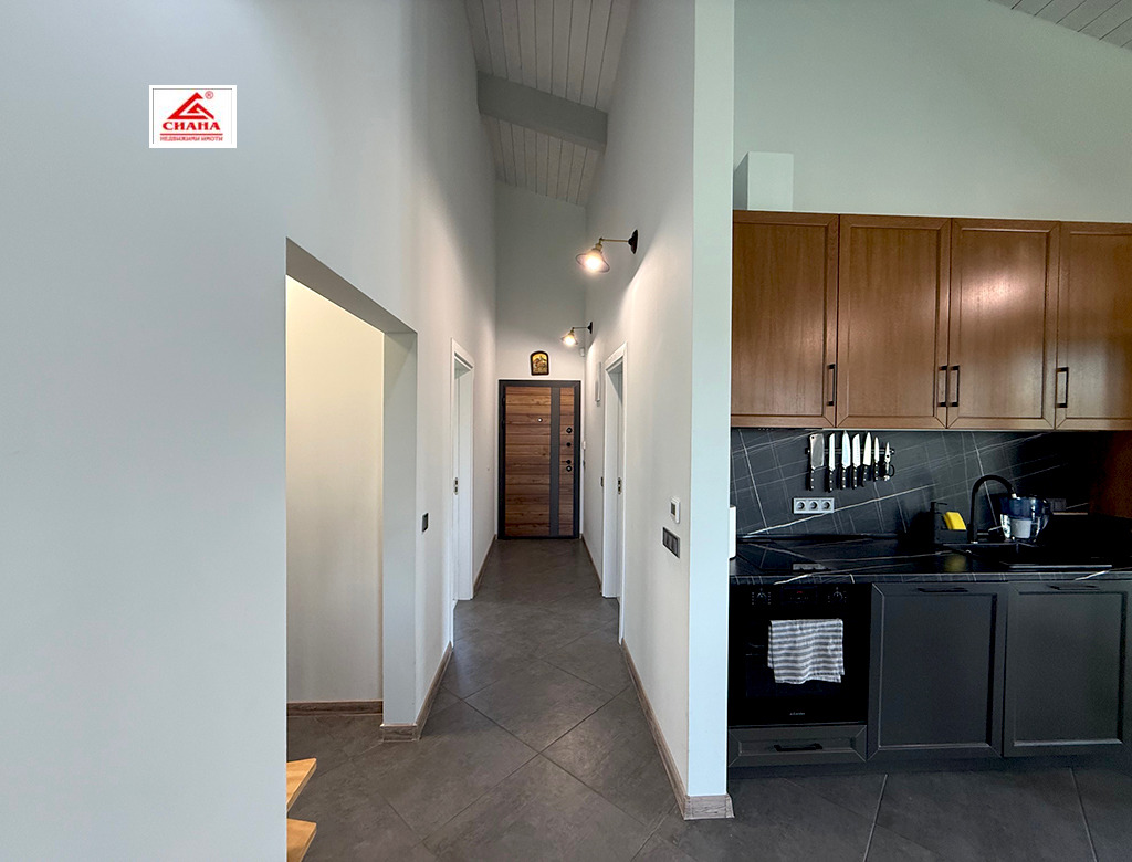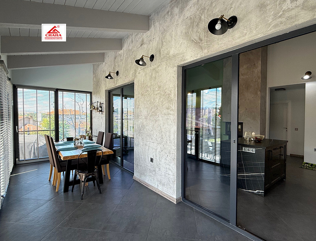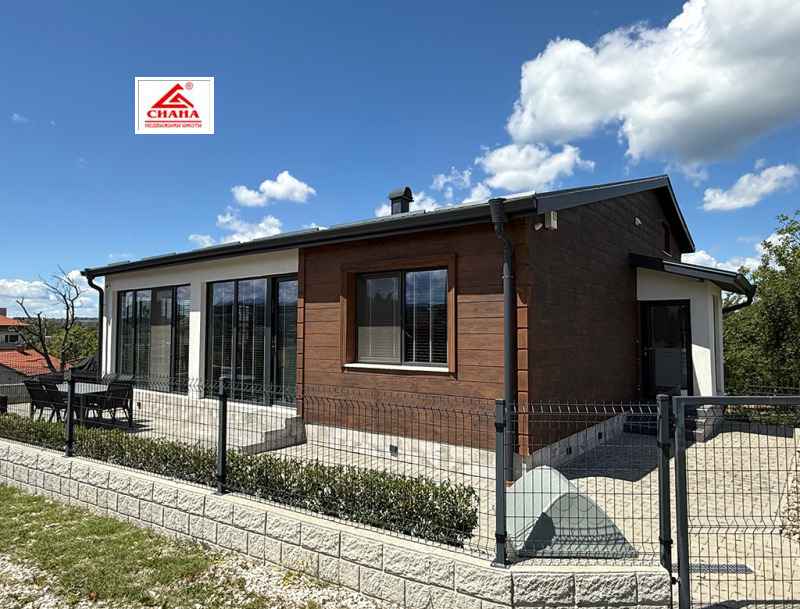 Сиана недвижими имоти продава новопостроена луксозна двуетажна къща в един от най-предпочитаните квартали за живеенне в град Габрово - Тлъчници, разположена във високата част, на тихо и спокойно място, с прекрасна панорамна гледка към града. Имотът е с разгъната застроена площ от 250 кв.м., функционално разпределена на две нива. На първия етаж са оформени просторна дневна с кухненска част, от която има излаз на голяма остъклена веранда, три самостоятелни спални, една от които със собствена баня със санитарен възел, перално помещение с тоалетна и втора баня със санитарен възел. Посредством вътрешно стълбище се достъпва до три тавански помещения, представляващи гардеробна, склад и гладачно. Първият етаж от къщата е изцяло завършен, готов за нанасяне, с налично в него пълно обзавеждане и оборудване. Второто ниво на имота е със застроена площ от 98 кв.м., завършено по БДС и може да бъде оформено според желанията на новия собственик. Къщата е поставена вътрешна и външна топлоизолация, изградена отоплителна система с термопомпа с подово отопление и монтирана климатична система за охлаждане. Сградата е разположена в самостоятелен парцел с площ от 335 кв.м. Дворът на имота е ограден, озеленен и добре поддържан. Има монтирана охранителна система с видеонаблюдение.