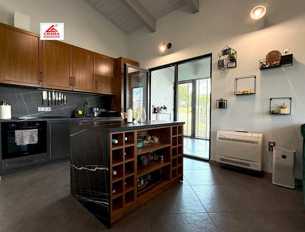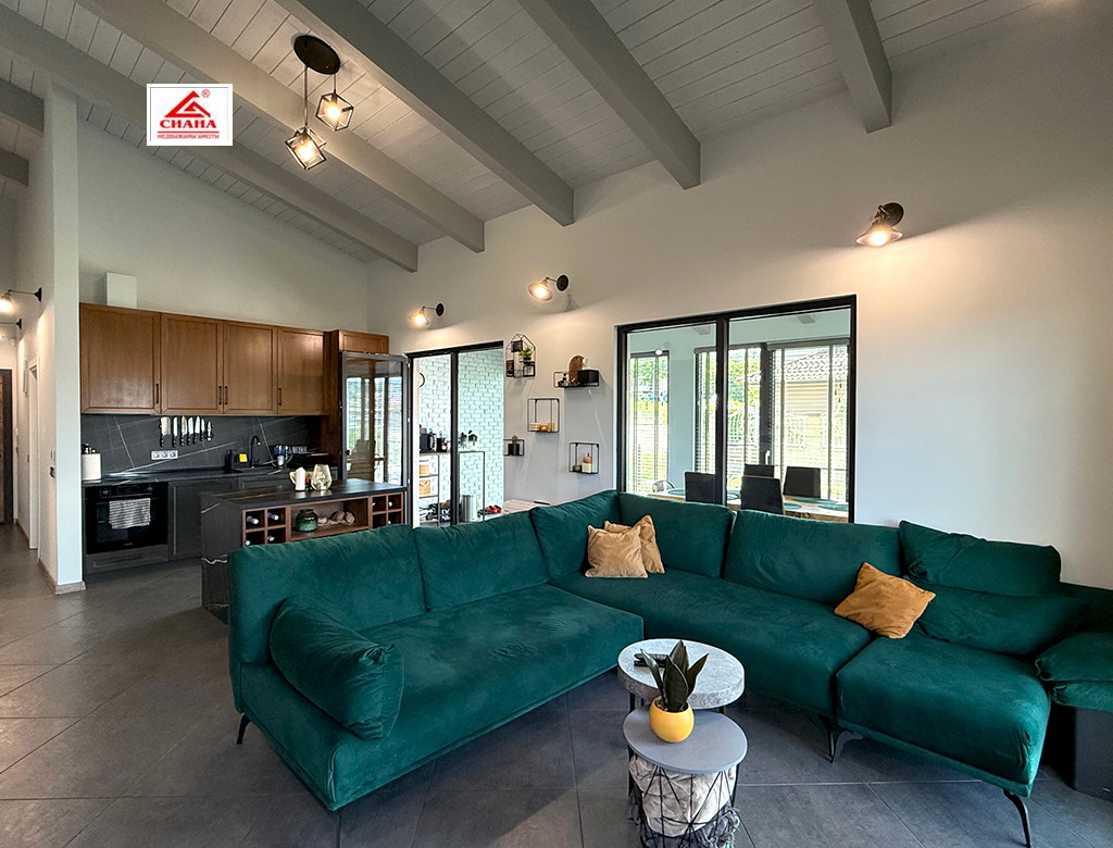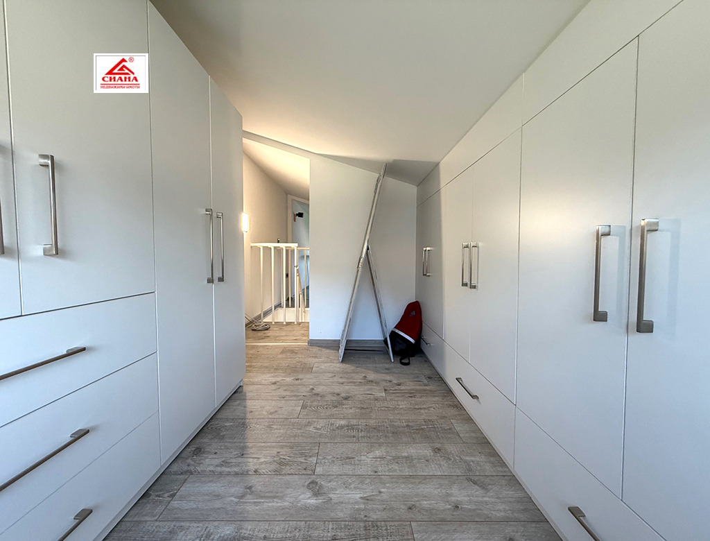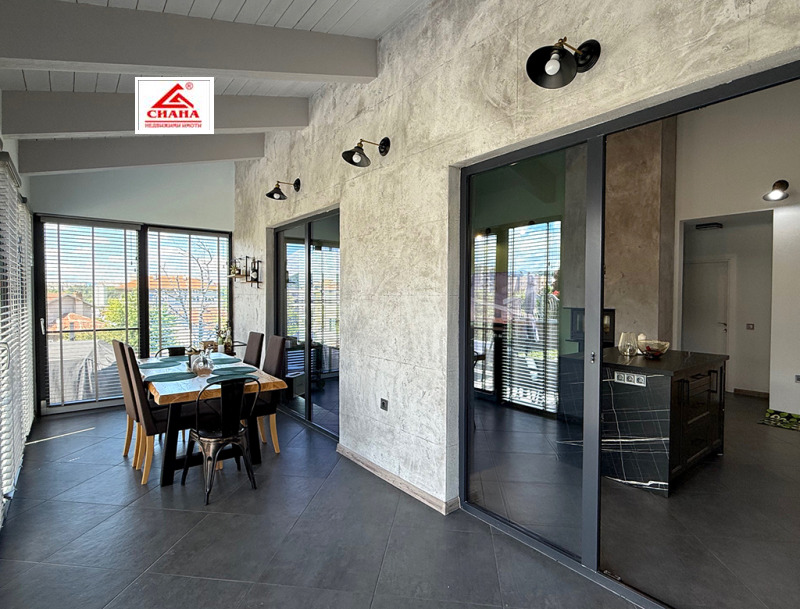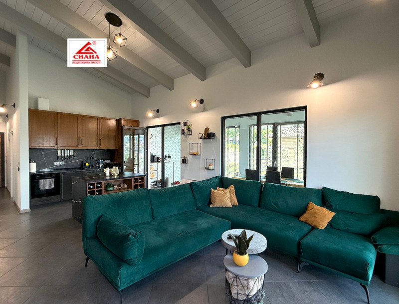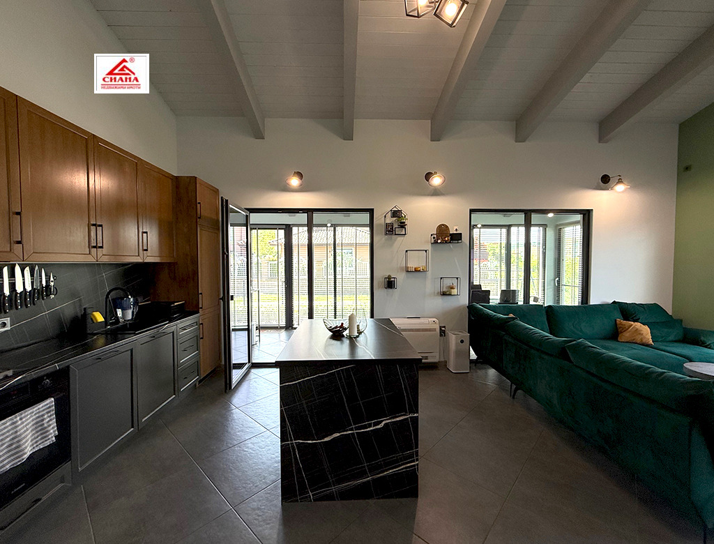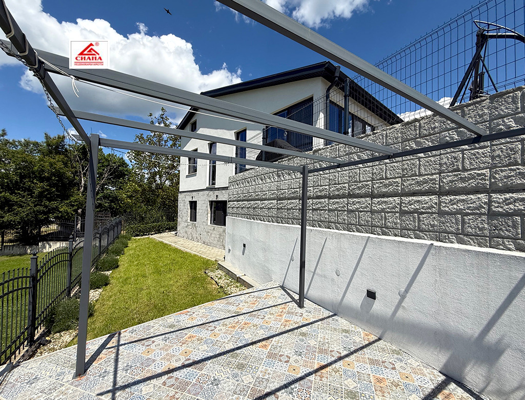 Сиана недвижими имоти продава новопостроена луксозна двуетажна къща в един от най-предпочитаните квартали за живеенне в град Габрово - Тлъчници, разположена във високата част, на тихо и спокойно място, с прекрасна панорамна гледка към града. Имотът е с разгъната застроена площ от 250 кв.м., функционално разпределена на две нива. На първия етаж са оформени просторна дневна с кухненска част, от която има излаз на голяма остъклена веранда, три самостоятелни спални, една от които със собствена баня със санитарен възел, перално помещение с тоалетна и втора баня със санитарен възел. Посредством вътрешно стълбище се достъпва до три тавански помещения, представляващи гардеробна, склад и гладачно. Първият етаж от къщата е изцяло завършен, готов за нанасяне, с налично в него пълно обзавеждане и оборудване. Второто ниво на имота е със застроена площ от 98 кв.м., завършено по БДС и може да бъде оформено според желанията на новия собственик. Къщата е поставена вътрешна и външна топлоизолация, изградена отоплителна система с термопомпа с подово отопление и монтирана климатична система за охлаждане. Сградата е разположена в самостоятелен парцел с площ от 335 кв.м. Дворът на имота е ограден, озеленен и добре поддържан. Има монтирана охранителна система с видеонаблюдение.