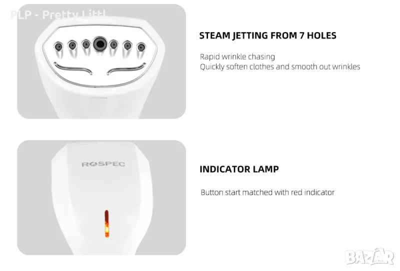 • Силна пара от 7 дюзи – ефективно изглажда гънки и освежава дрехите