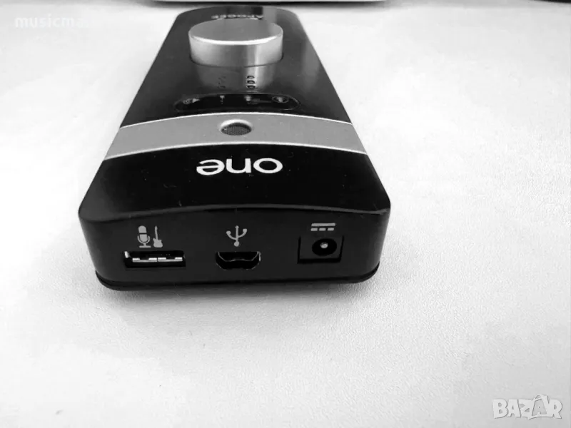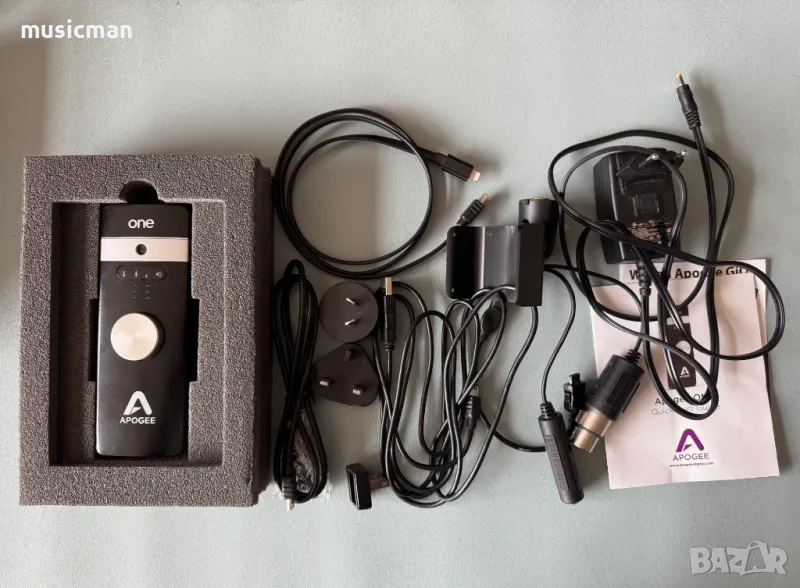 Apogee One, качеството на Apogee в джобен формат. Кристален звук, независимо дали записвате или слушате. 24-bit/96kHz A/D and D/A conversion. 2 входа и 2 изхода едновременно. Има един инструментален вход ( примерно за китара), xlr вход за микрофон и вграден кондензаторен микрофон. Като в даден момент може да се ползва само единия от микрофоните заедно с инструменталния вход. Захранва се по 3 начина: през USB, чрез собствено захранване или чрез батерии. Разбира се има и един стерео изход за слушалки или монитори. Произведено в щатите.