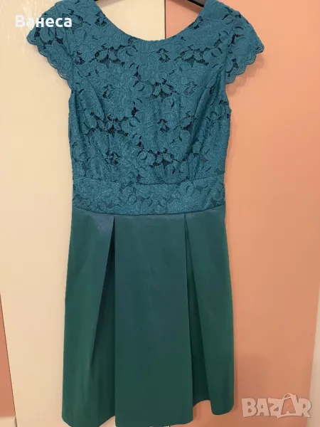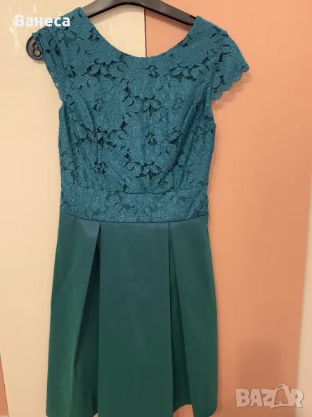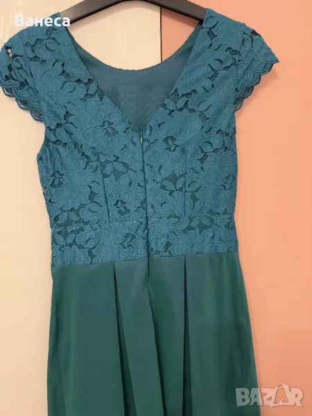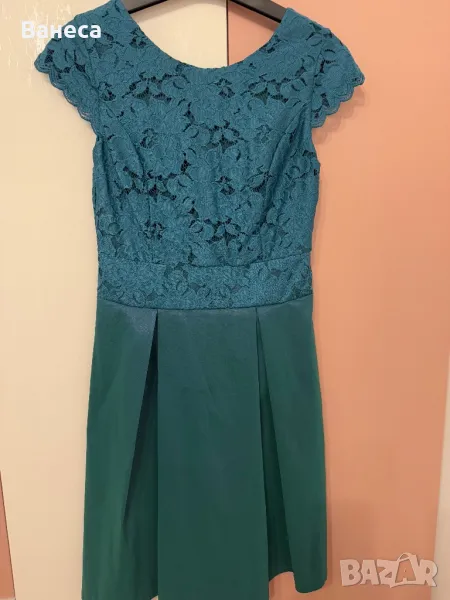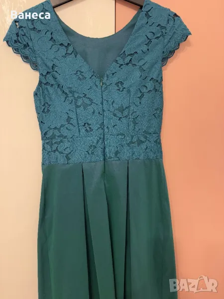 Красива рокля с дантела в горната част с тафта в зелено надолу.много стилна.