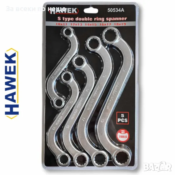Звездогаечни S–образни ключове 10 – 19 мм 5 части HAWEK