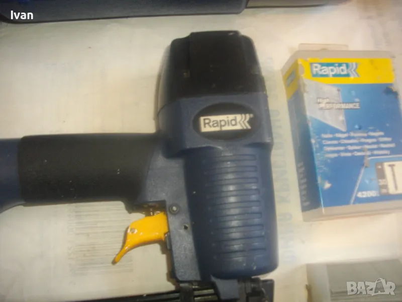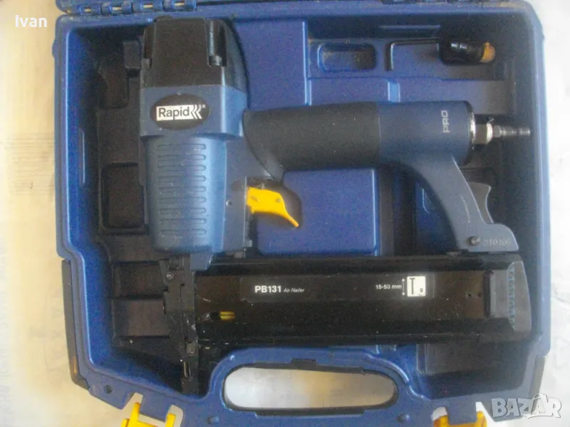 ШВЕДСКИ ПРОФИ ОРИГИНАЛЕН ПНЕВМАТИЧЕН ТАКЕР ЗА ПИРОНИ 15-50мм RAPID PB131 ПЪЛЕН КОМПЛЕКТ ПОЧТИ НОВ