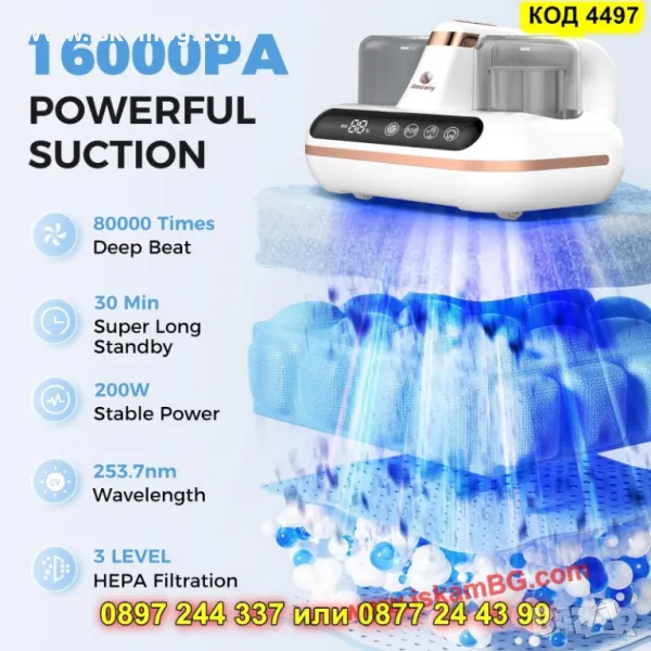 Прахосмукачка против акари с UV и HEPA защита - КОД 4497