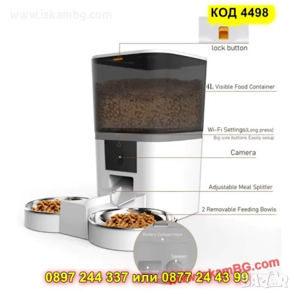 Представете си свят, в който Вашият домашен любимец получава храната си навреме, дори когато Вие сте далеч. Сега това е възможно – с интелигентната автоматична WiFi хранилка с камера и таймер, която Ви осигурява пълен контрол и постоянна връзка с Вашето куче или котка, където и да сте!