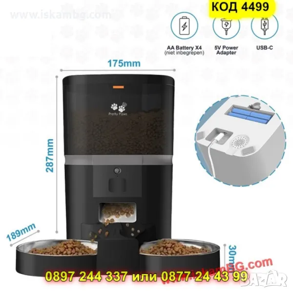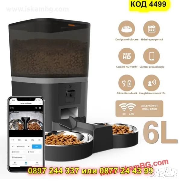 Смарт автоматична хранилка с камера и аудио ЧЕРЕН ЦВЯТ- КОД 4499