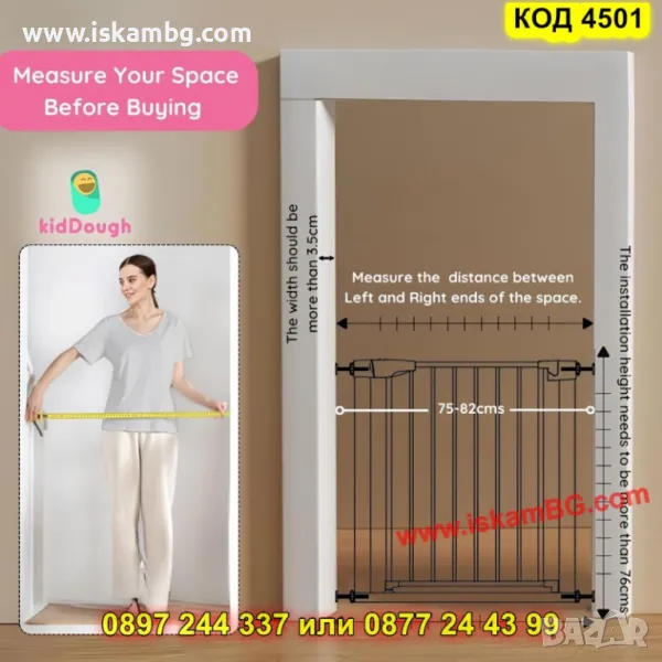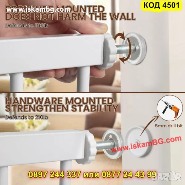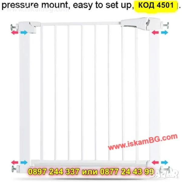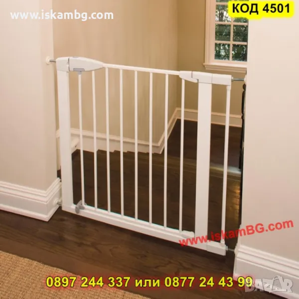 Гарантирайте безопасността на Вашето дете с висококачествената предпазна преграда за врати и стълби. Създадена с мисъл за родителите и най-вече за децата, тази здрава метална бариера е лесна за монтаж, изключително сигурна и същевременно удобна за ежедневна употреба. Перфектна за ограничаване на достъпа до опасни зони като стълбища, кухни или сервизни помещения – без да е необходимо пробиване на стени!