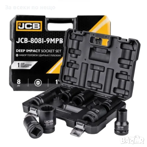 Комплект дълбоки ударни вложки 12-стенни 1" (22 – 41 мм) 8 части JCB