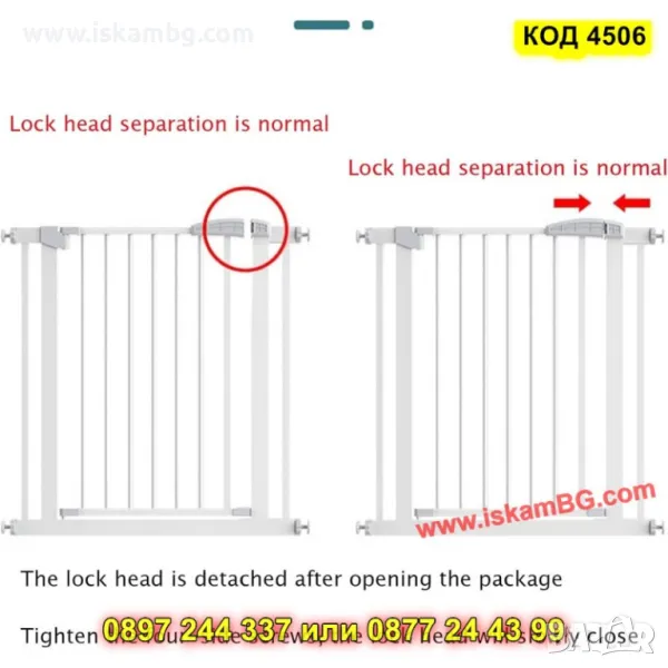 Автоматично затваряне и заключване: Вратата се затваря бавно и автоматично след отваряне, което осигурява спокойствие, дори когато държите детето в ръце.