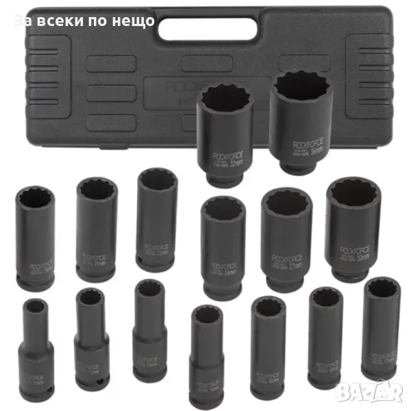 Комплект дълбоки ударни вложки 1/2″ (10 – 36 мм) 15 ЧАСТИ ROCKFORCE