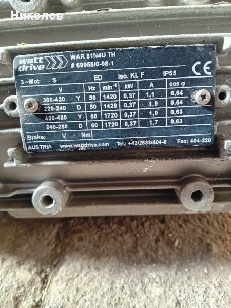моторедуктор 0.37 кв. 1420об. изходящ вал 40об → Обява 50351967