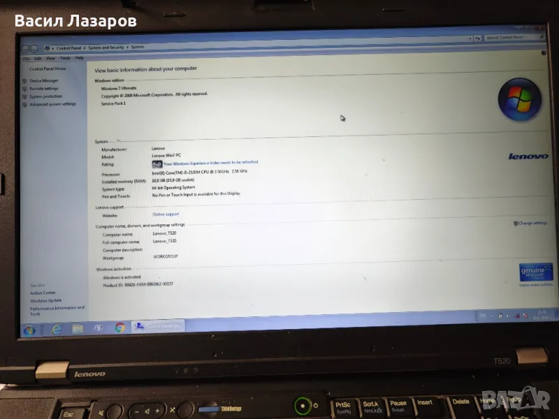 Леново T520 параметрите на лаптопа са на снимките