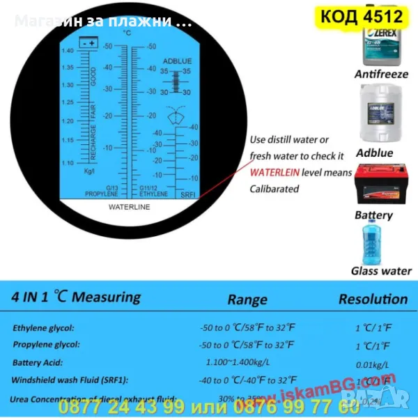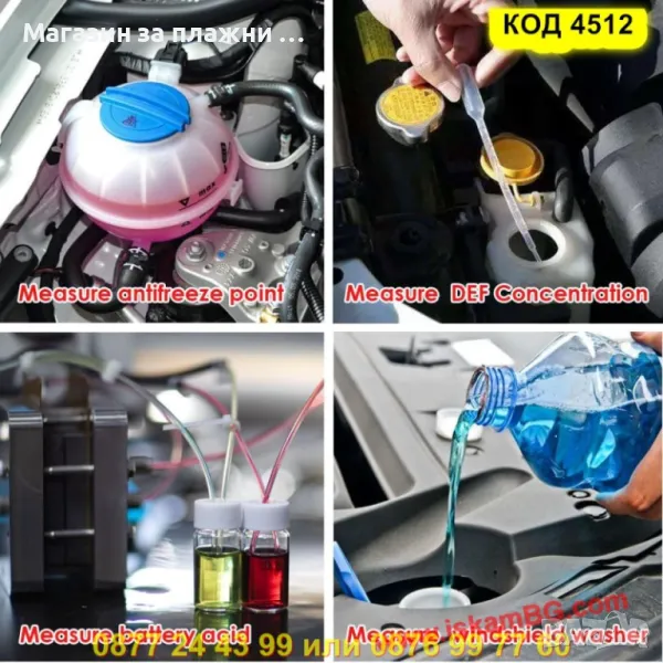 Осигурете си спокойствие през всеки сезон с този компактен и прецизен 4-в-1 оптичен рефрактометър. Той е създаден да ви помогне при поддръжката на автомобила чрез лесен и бърз анализ на основни течности – охлаждаща, акумулаторна, почистваща и AdBlue.